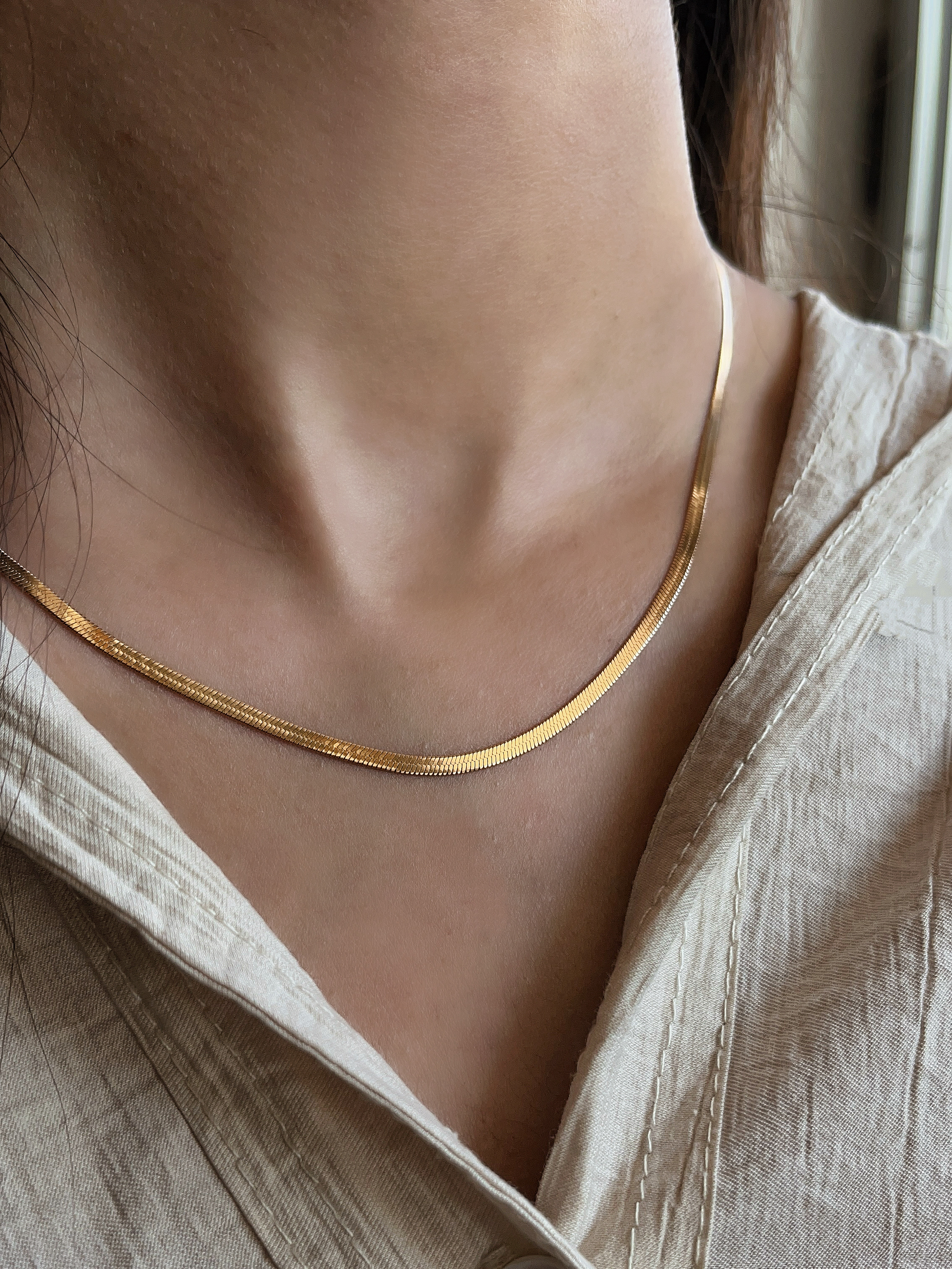 هرینگبون گلد ✅برند ژوپینگ ✅دارای گارانتی و ضمانت نامه رنگ ثابت و ضد حساسیت طول گردنبند: ۴۵ سانتی متر ❌ترجیحا حین استحمام استفاده نشود. ❌از اسپری کردن عطر و ادکلن بر روی محصول خودداری کنید.