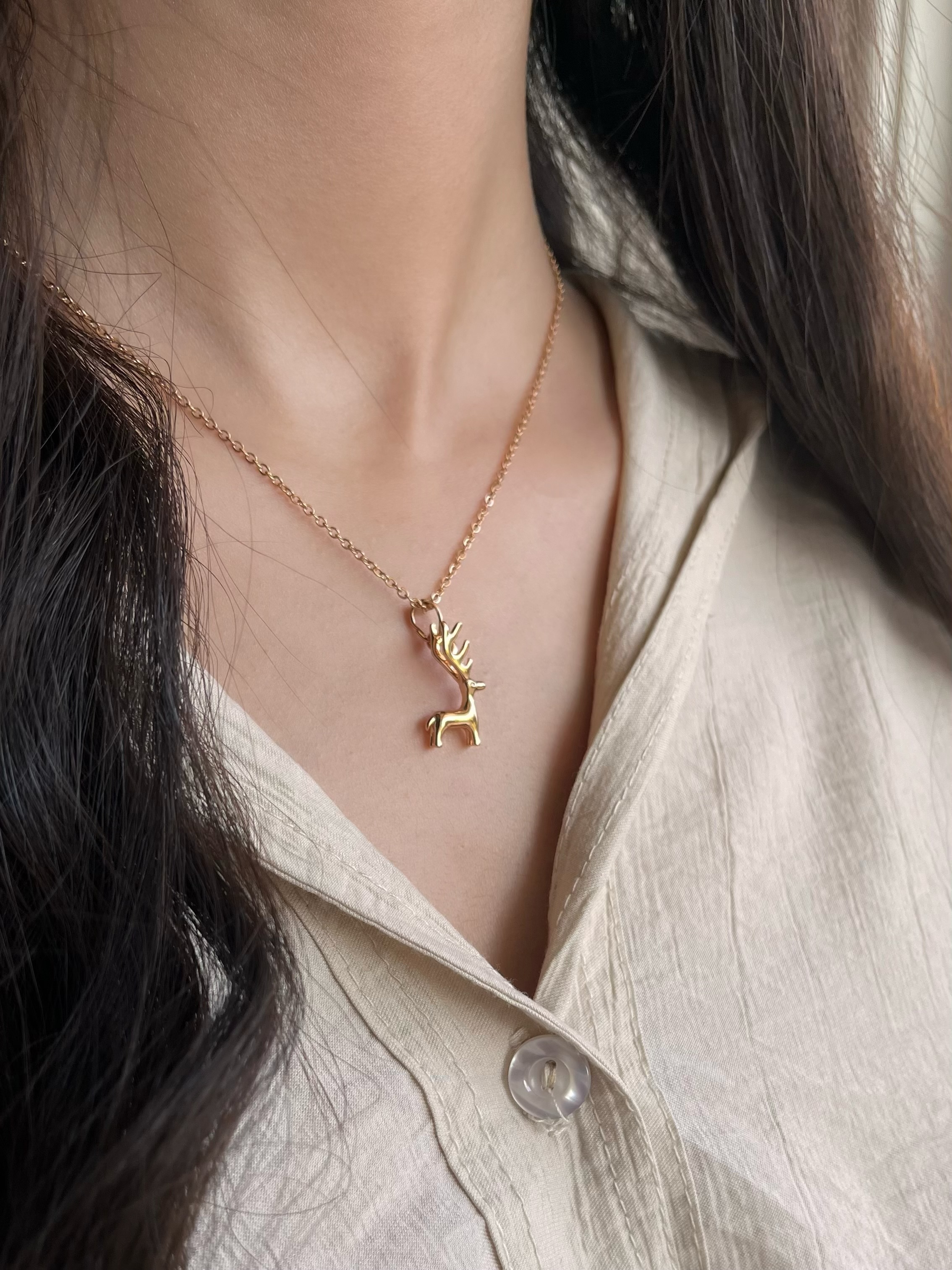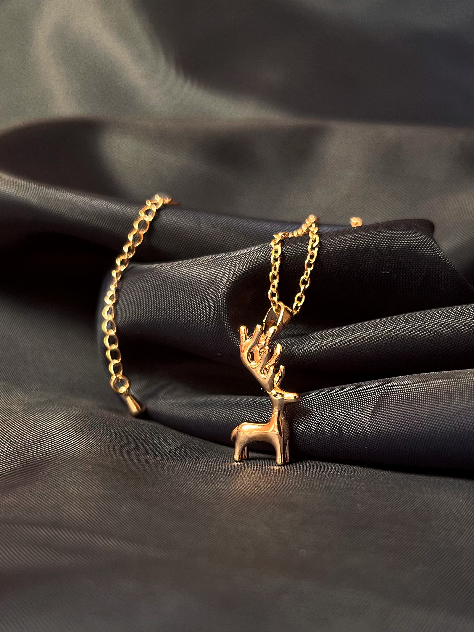 گردنبند گوزن گلد ✅ژوپینگ ✅ضد حساسیت ✅رنگ ثابت ✅دارای گارانتی طول زنجیر: ۴۵ سانتی متر ❌ترجیحا حین استحمام استفاده نشود. ❌از اسپری کردن عطر و ادکلن بر روی محصول خودداری کنید.